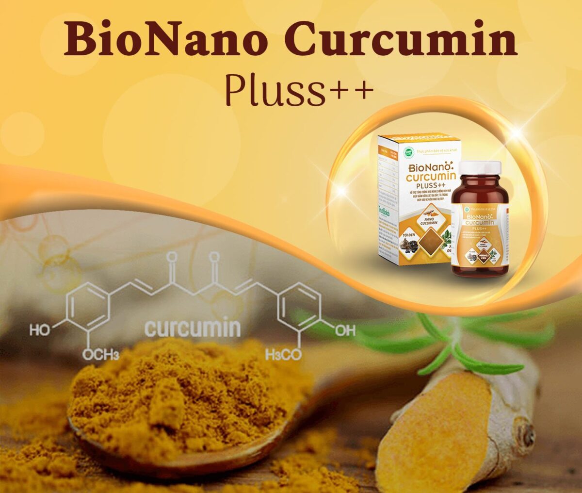 Việc sử dụng công nghệ nano tạo ra các hạt Nano Curcumin với kích thước siêu nhỏ đã giúp các phân tử nhanh chóng thấm thấu vào từng tế bào. Tinh chất Bio-Nanocurcumin Pluss++ là sản phẩm tiên phong kết hợp từ Nanocurcumin, Xạ đen, Tỏi đen,…Tạo nên một công thức siêu sinh khả dụng giúp: