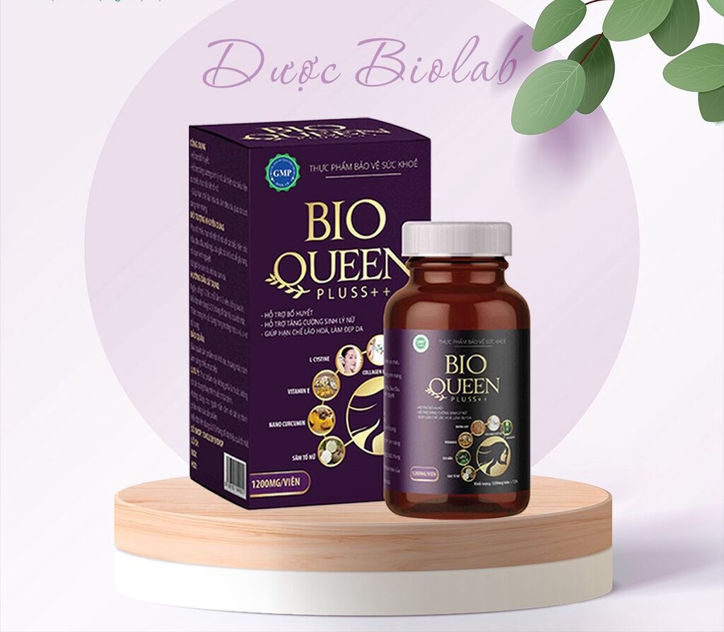 Bioqueen pluss++ là sản phẩm được nghiên cứu và tư vấn bởi các chuyên gia dược Biolab tiên phong kết hợp bộ 3 nguồn nội tiết tố thảo dược từ Cao Sâm tố nữ, Isoflavone 80%, Chiết xuất Củ mài đắng (Pregnenolone acetate), cùng bài cao khô hỗn hợp bổ máu huyết và Nanocurcumin, L-cystine, collagen peptide, Cholin, Vitamin E cùng các tinh chất quý khác mang đến một giải pháp an toàn hiệu quả cho phụ nữ suy giảm nội tiết tố nữ, suy giảm chức năng sinh lý, gặp các vấn đề về máu huyết nội tiết kinh nguyệt sau sinh, tiền mãn kinh, mãn kinh, tuổi trung niên, lão suy theo thời gian. Viên nội tiết thảo dược Bioqueen pluss++ là giải pháp cho sức khỏe và nhan sắc phái đẹp.