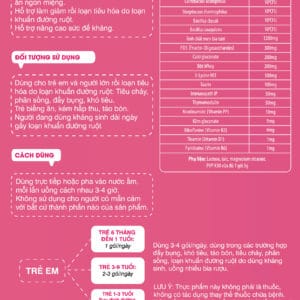 – Bổ sung vi khuẩn có ích, hỗ trợ duy trì hệ vi sinh đường ruột, tăng cường hấp thu, giúp ăn ngon miệng |